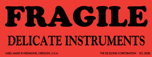 > 1 1/2" x 4" Fragile Delicate Instrument Label, Fluorescent Red
