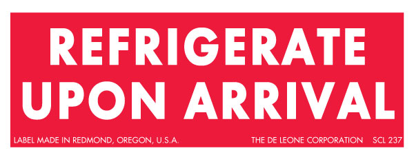 > 1 1/2" x 4" Refrigerate Upon Arrival Label