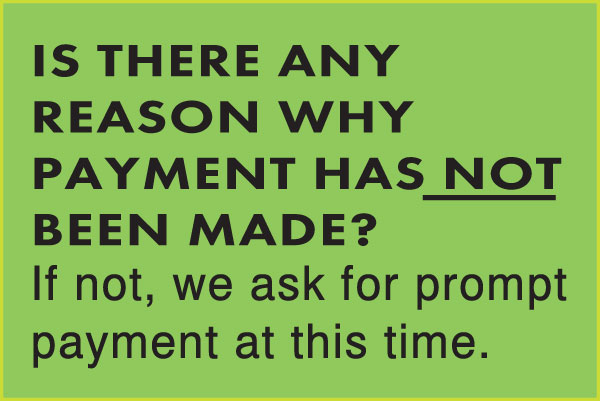 Text: Is There Any Reason Why Payment Has Not Been Made? If not, we ask for prompt payment at this time.