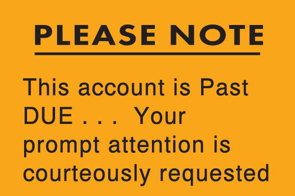 Text: Please Note This Account Is Past Due… Your Prompt Attention Is Courteously Requested.