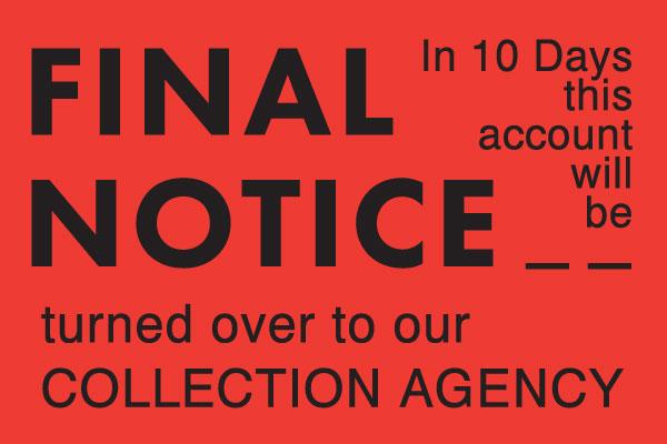 Text: Final Notice, In 10 Days This Account Will Be Turned Over To Our Collection Agency.