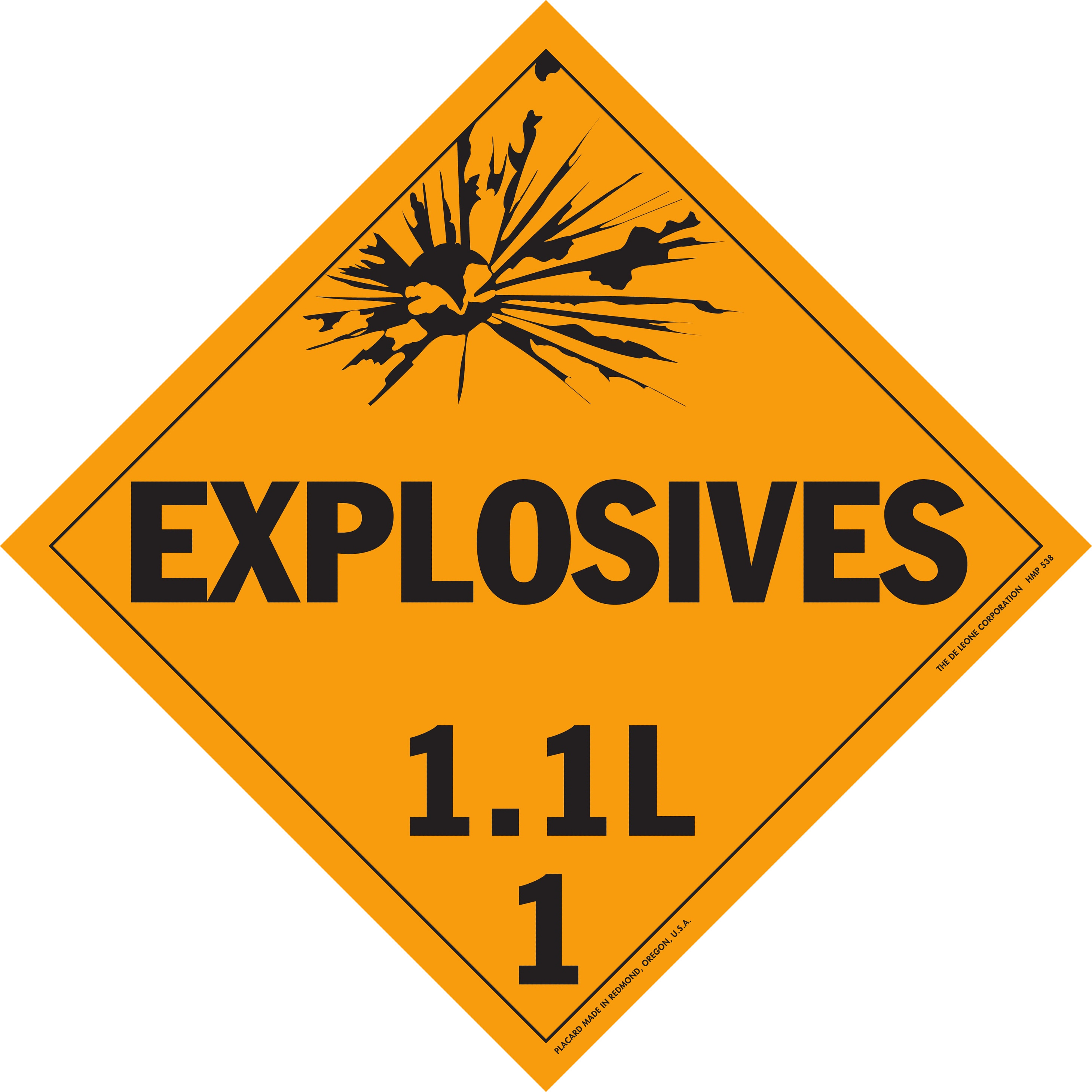 Home > Hazardous Material Labels > Hazardous Material Placards > Hazardous Material Placards > 10 3/4" x 10 3/4" Class 1.1L Explosive Placard, Vinyl