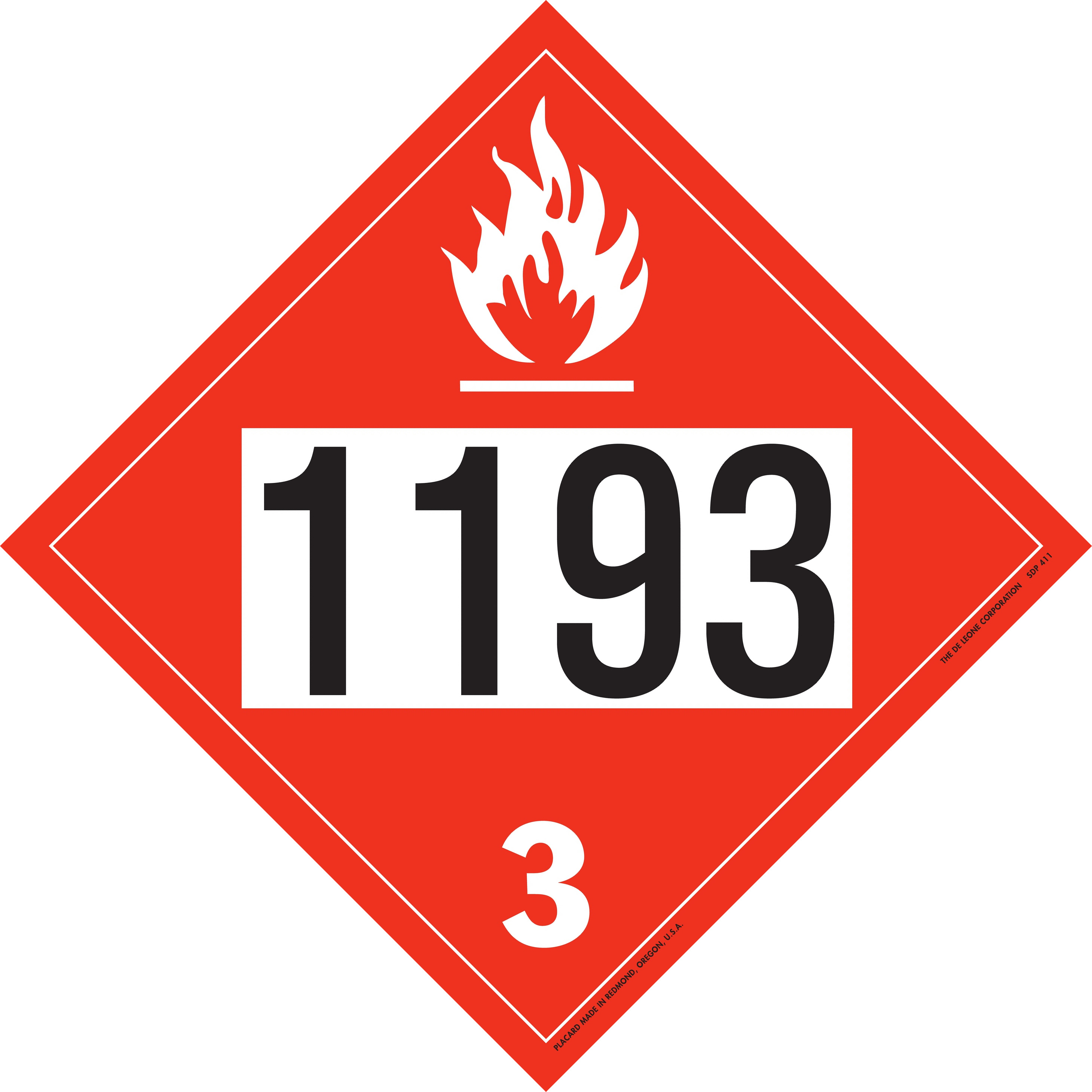 D.O.T. 4-Digit Preprinted Placards - Class 3 Flammable Liquids, Tagboard