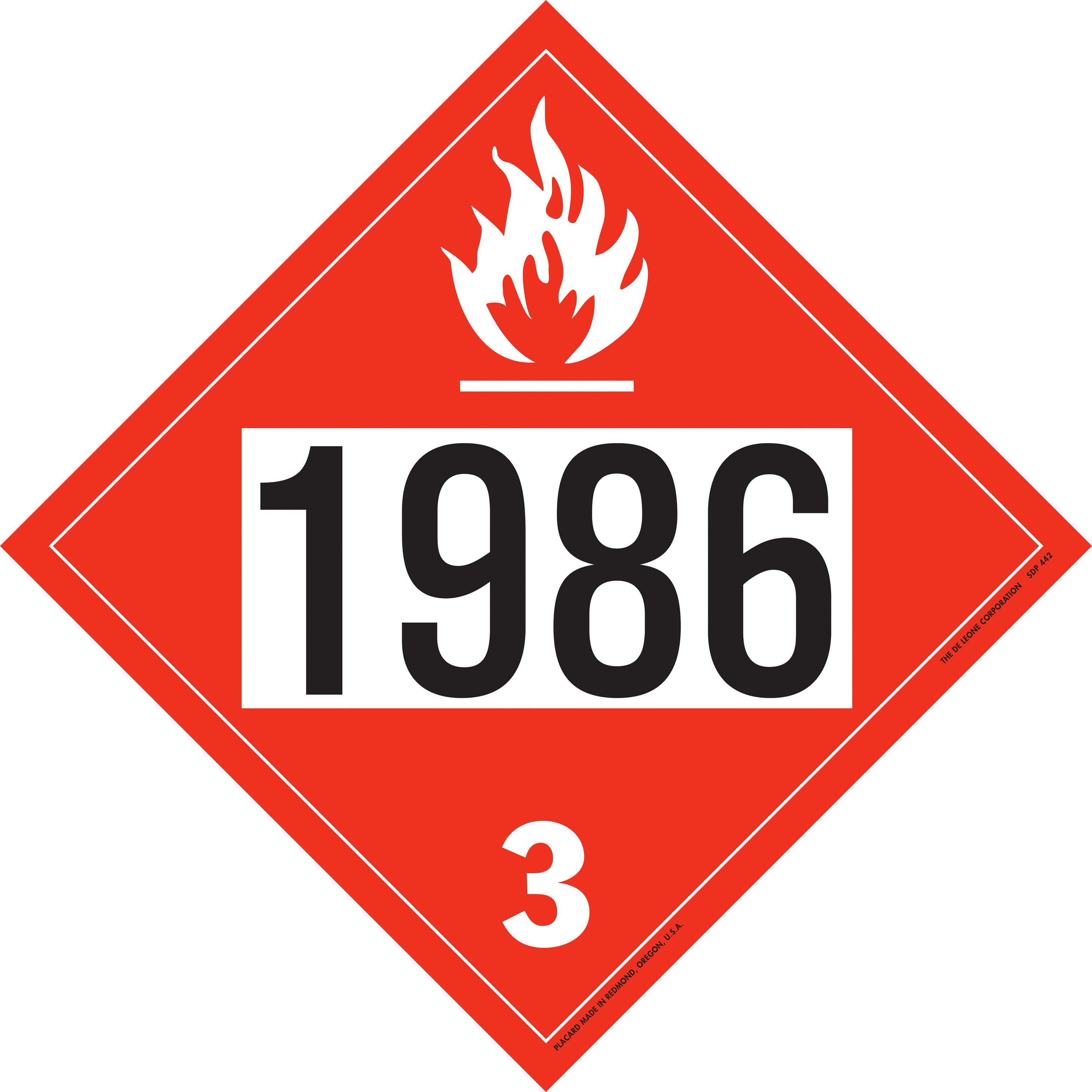 D.O.T. 4-Digit Preprinted Placards - Class 3 Flammable Liquids, Tagboard