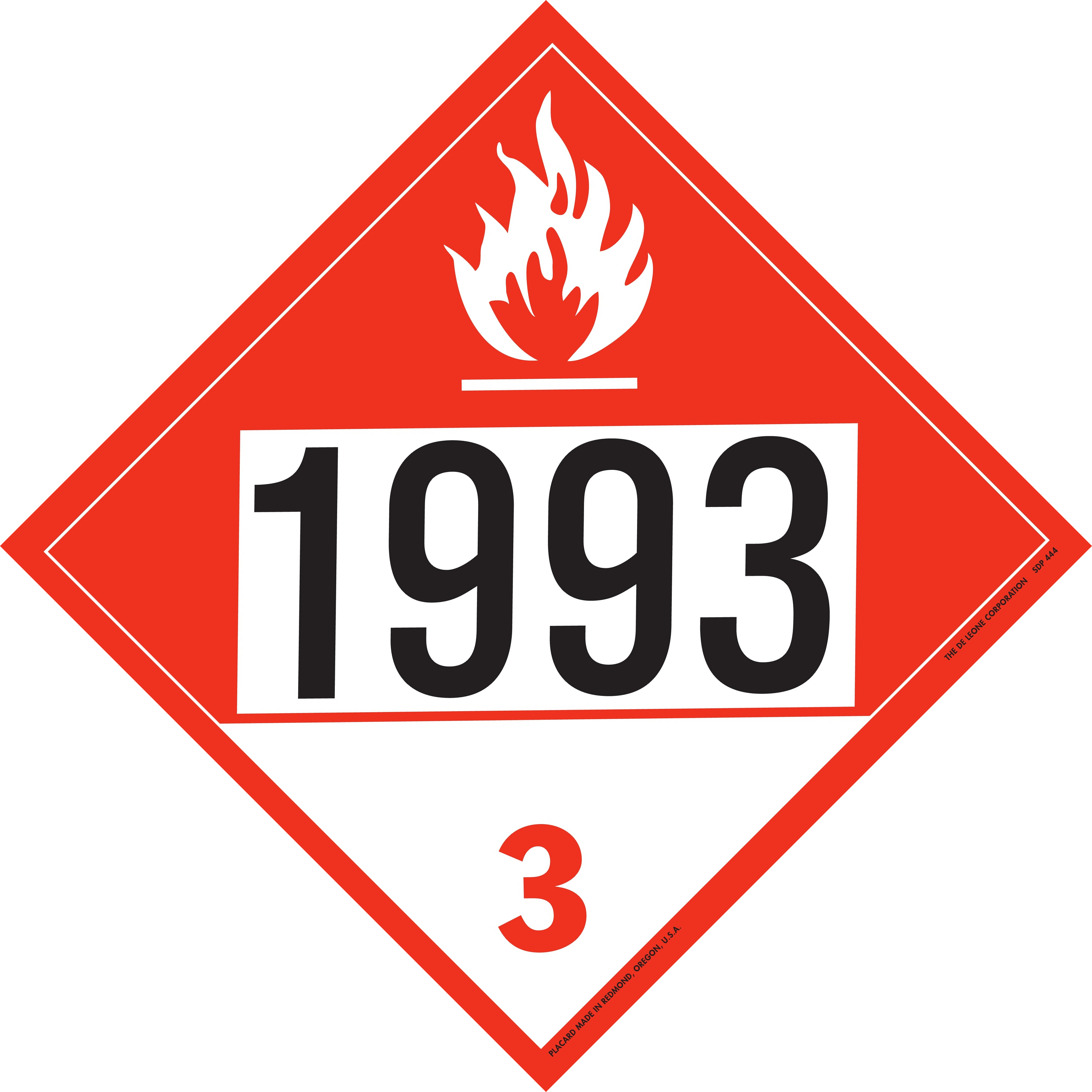 D.O.T. 4-Digit Preprinted Placards - Class 3 Flammable Liquids, Tagboard