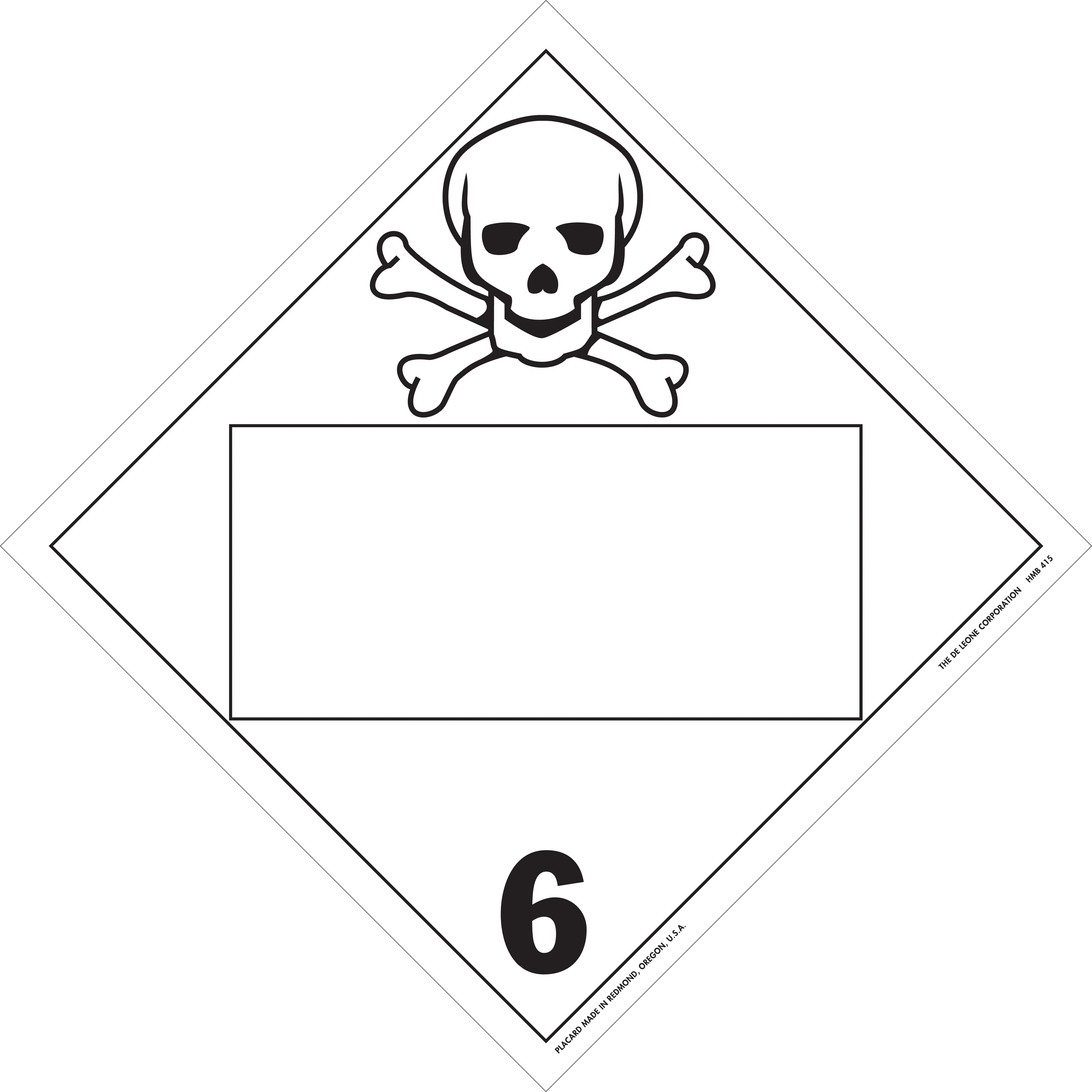 Home > Hazardous Material Labels > Hazardous Material Placards > D.O.T. 4-Digit Placard Blanks > 10 3/4" x 10 3/4" Class 6 D.O.T. 4-Digit Placard Blank, Vinyl