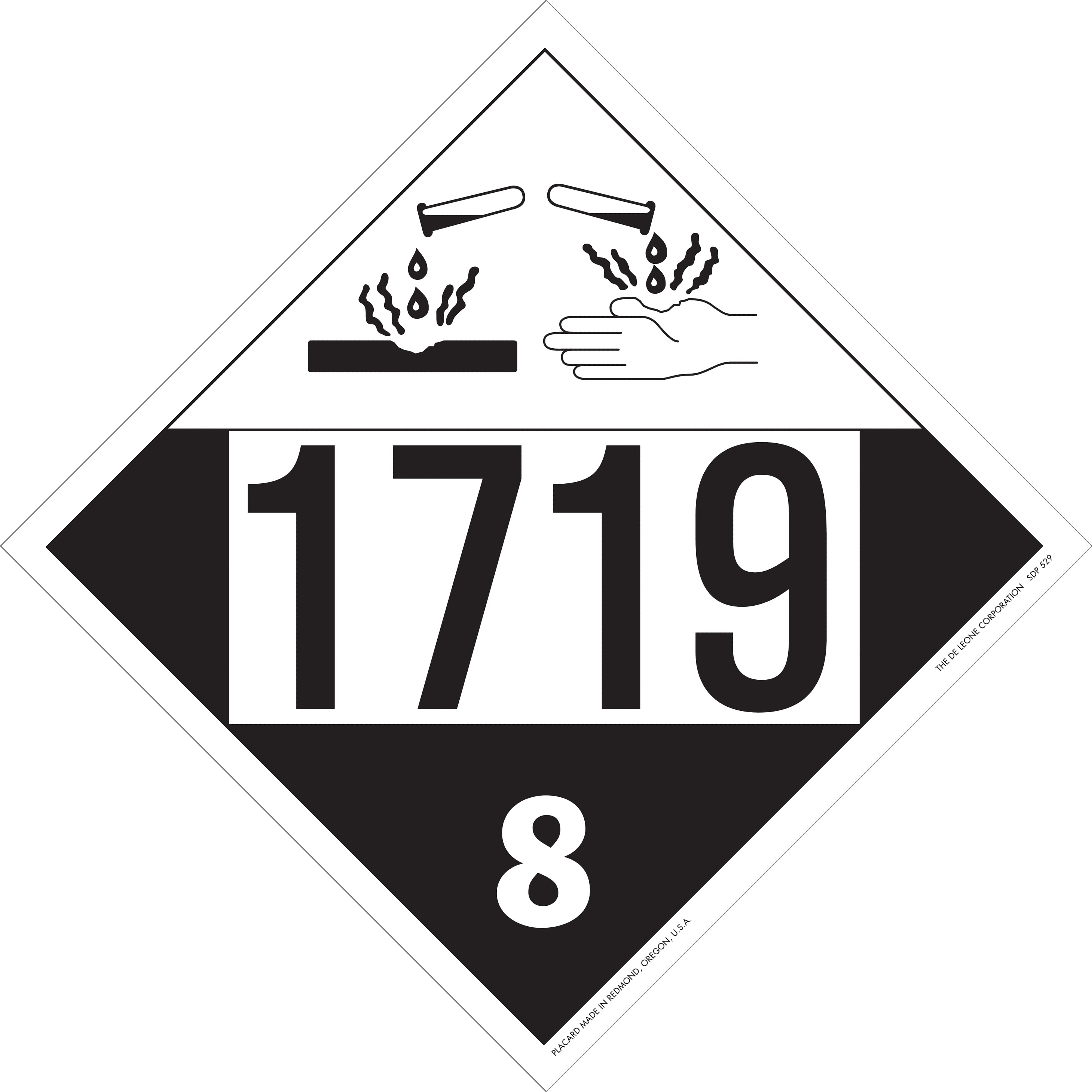 Home > Hazardous Material Labels > Hazardous Material Placards > D.O.T. 4-Digit Preprinted Placards > 10 3/4" x 10 3/4" Class 8 D.O.T. 4-Digit Preprinted Placard, Vinyl