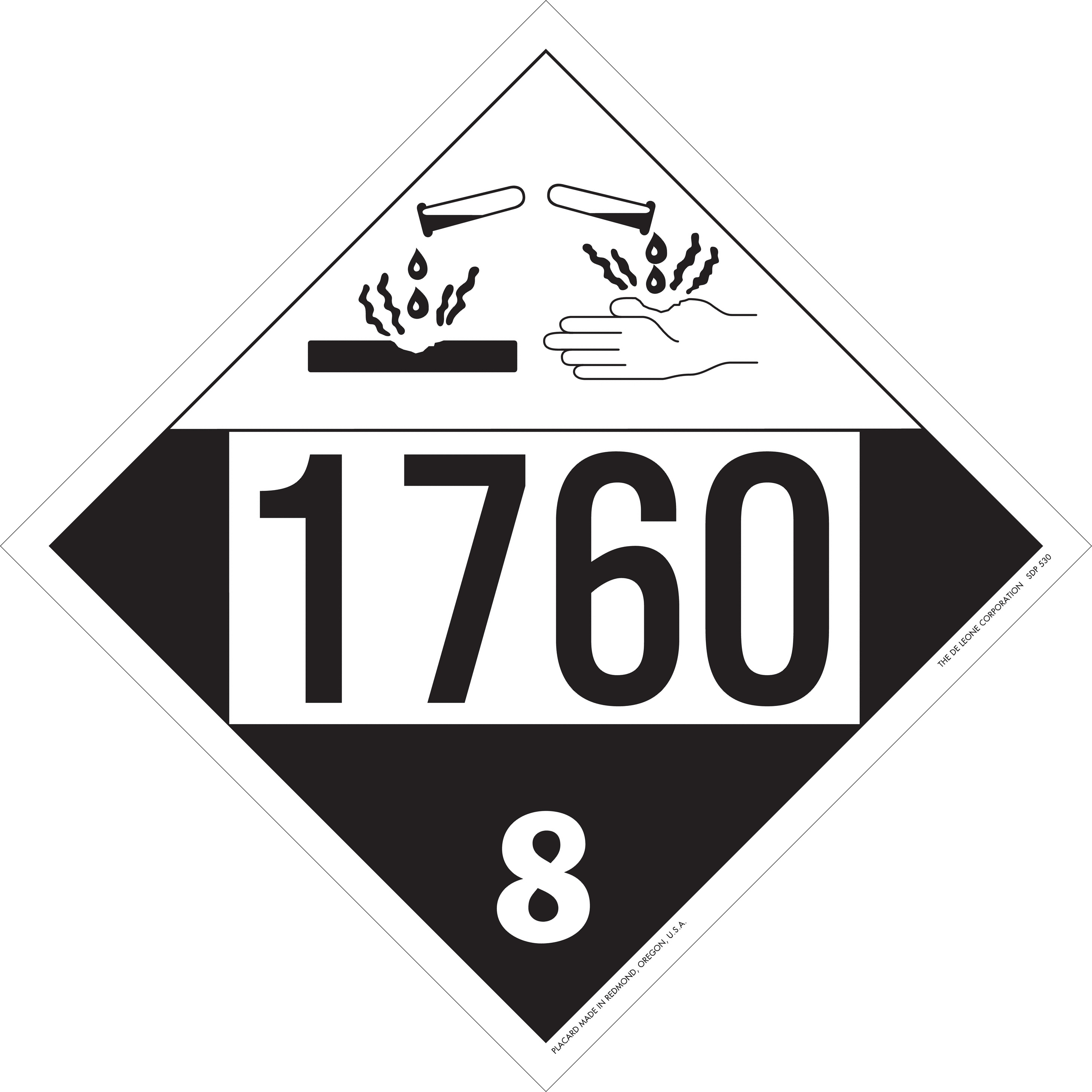 Home > Hazardous Material Labels > Hazardous Material Placards > D.O.T. 4-Digit Preprinted Placards > 10 3/4" x 10 3/4" Class 8 D.O.T. 4-Digit Preprinted Placard, Vinyl