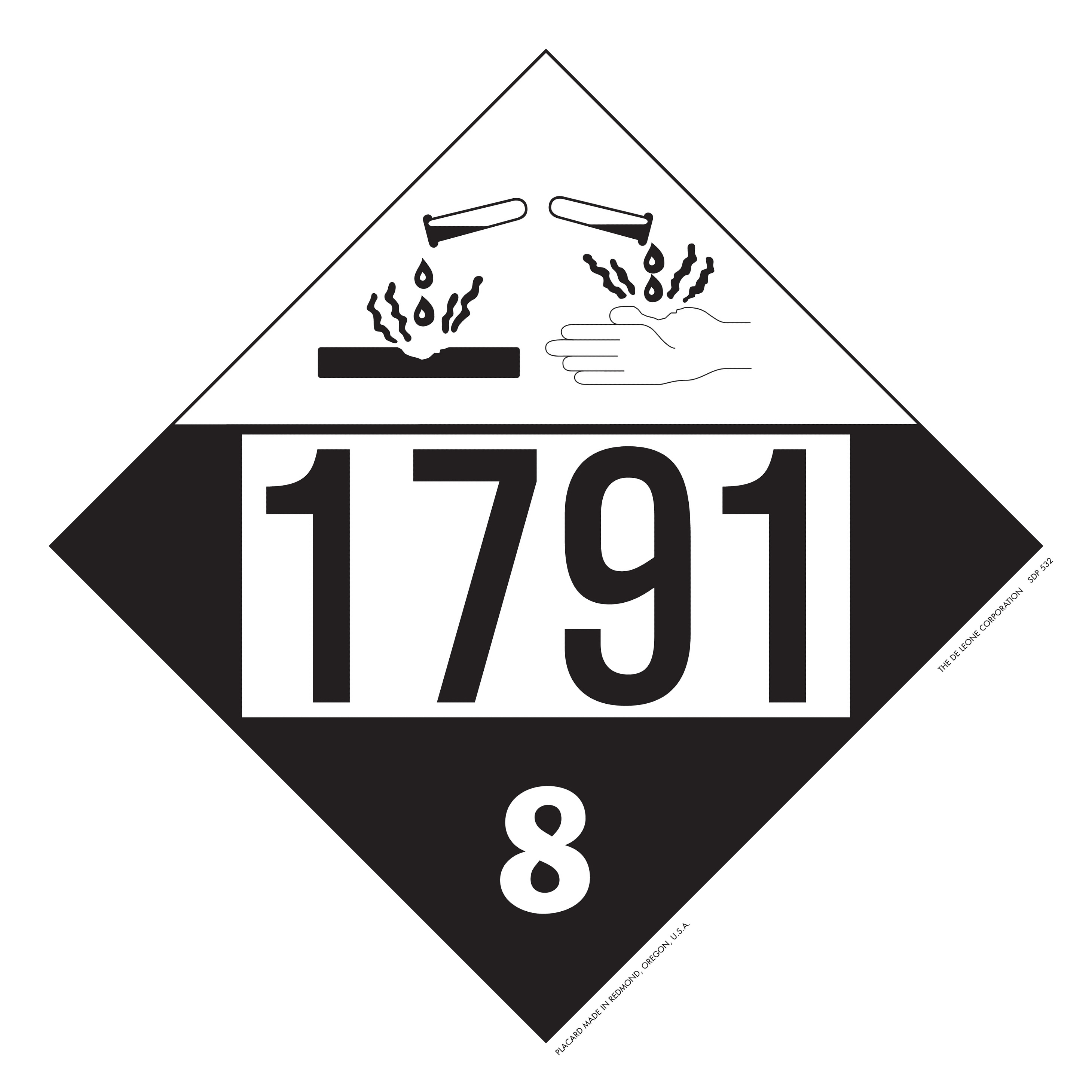 D.O.T. 4-Digit Preprinted Placards - Class 8 Corrosive, Vinyl