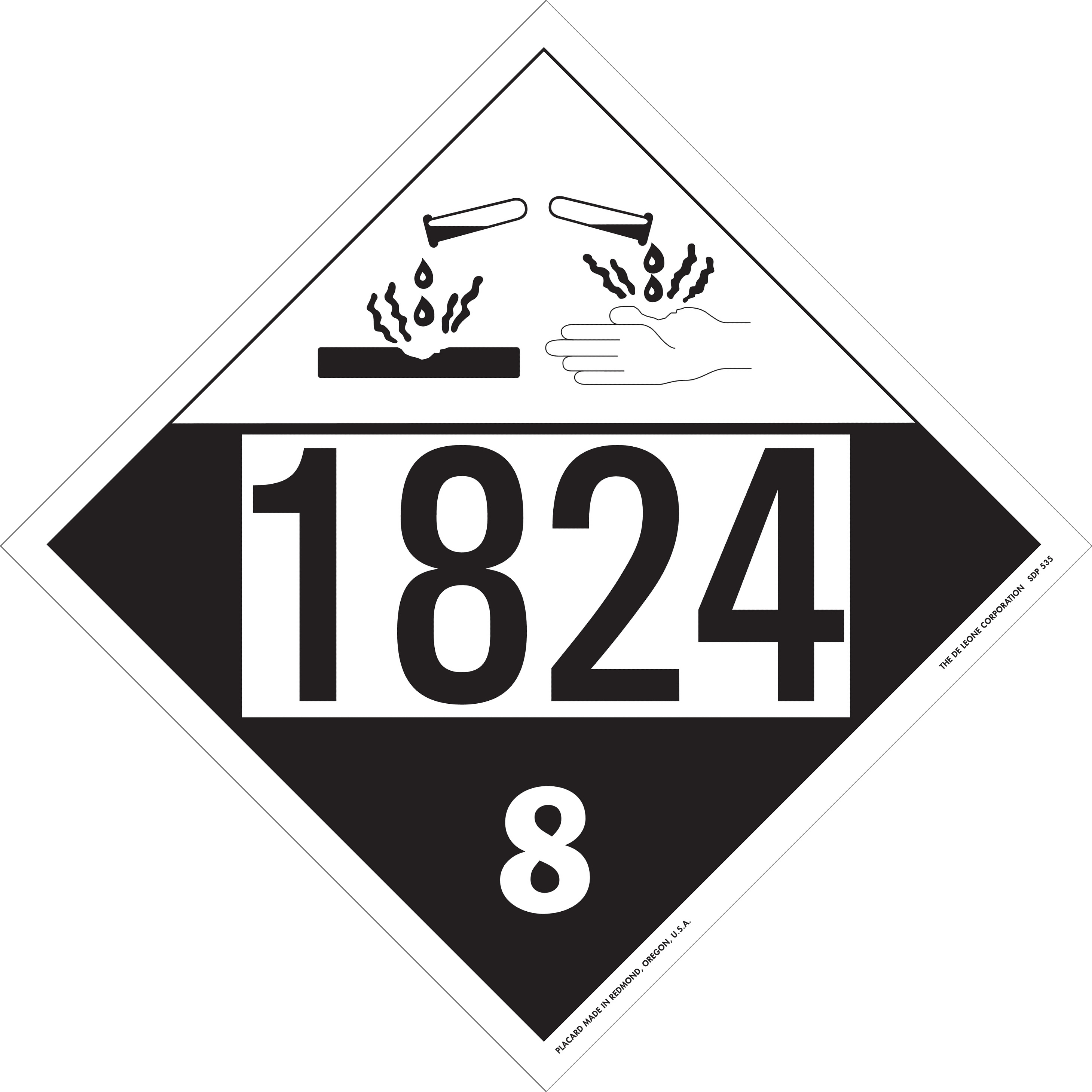 Home > Hazardous Material Labels > Hazardous Material Placards > D.O.T. 4-Digit Preprinted Placards > 10 3/4" x 10 3/4" Class 8 D.O.T. 4-Digit Preprinted Placard, Vinyl