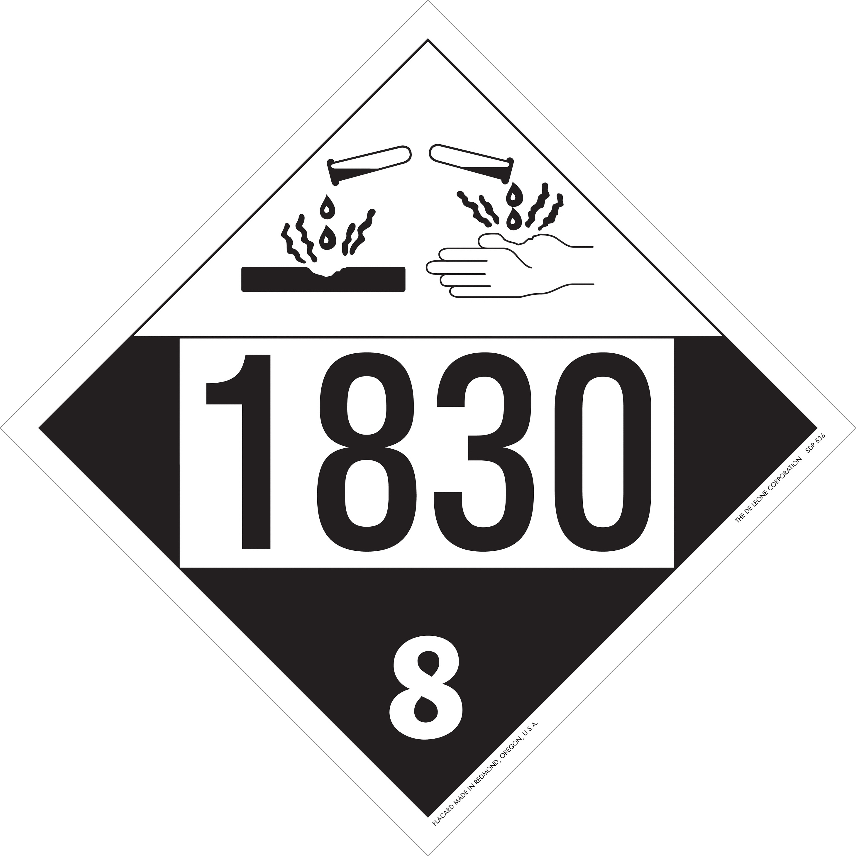 Home > Hazardous Material Labels > Hazardous Material Placards > D.O.T. 4-Digit Preprinted Placards > 10 3/4" x 10 3/4" Class 8 D.O.T. 4-Digit Preprinted Placard, Vinyl
