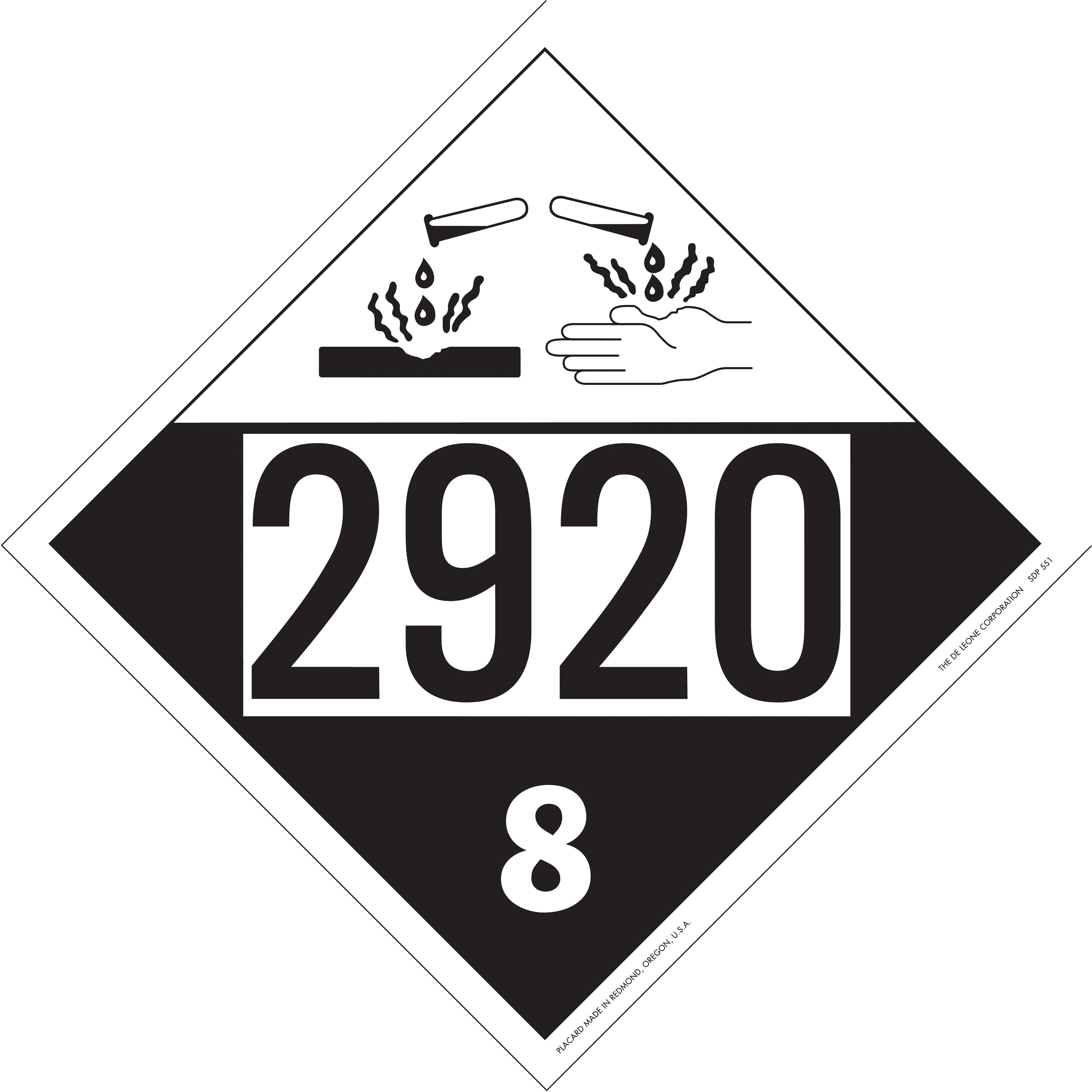 Home > Hazardous Material Labels > Hazardous Material Placards > D.O.T. 4-Digit Preprinted Placards > 10 3/4" x 10 3/4" Class 8 D.O.T. 4-Digit Preprinted Placard, Vinyl