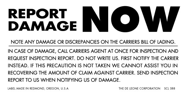 Shipping & Packaging Label - Report Damage Now