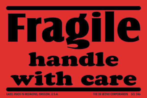 2" x 3" Fragile Handle With Care Label, Fluorescent Red