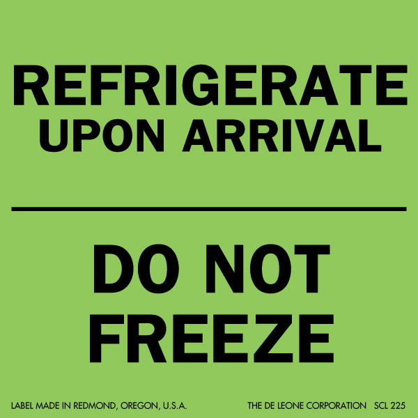 Text: Refrigerate Upon Arrival Do Not Freeze