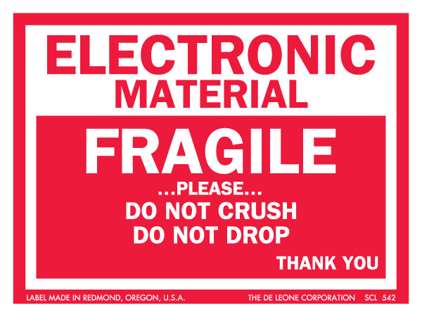 Text: Electronic Material Fragile Please Do Not Crush Do Not Drop