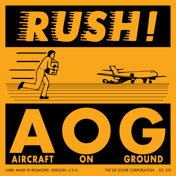 Text: Rush! AOG Airplane On Ground