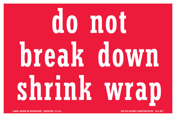 4" x 6" Do Not Break Down Shrink Wrap Label