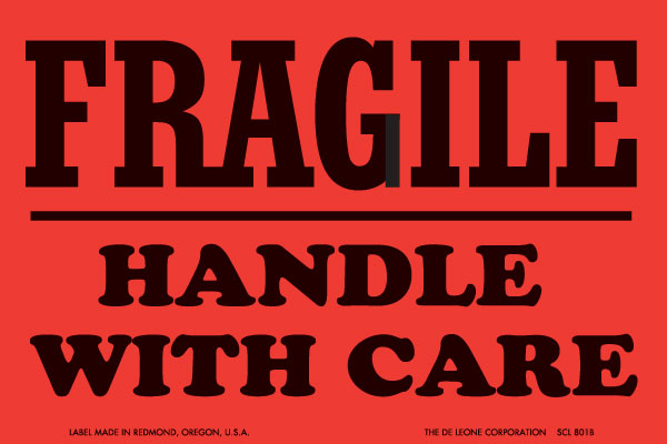 4" x 6" Fragile Handle With Care Label, Fluorescent Red