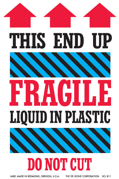 Text: This End Up Fragile Liquid In Plastic Do Not Cut